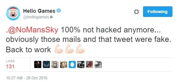 And now Hello Games is saying that they were hacked and that everything prior to Sean's tweets was a result of the hack including the emails...weird stuff...so was Murray saying it was an inside job part of the hack? I don't know what to believe anymore but I think this one is put to rest.