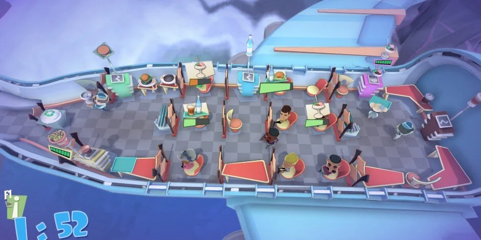 My main tip for this game, especially when playing solo, is to have everything set up to go after you grab it. Grab the water, push the machine to produce another one, then serve the water. This lets you have everything you could need ready on stand-by for when a customer orders one and you won’t have to wait for it. There are some tasks that require you to perform them as they are ordered, such as the shakes, but if you can early prep serving items then do that.
