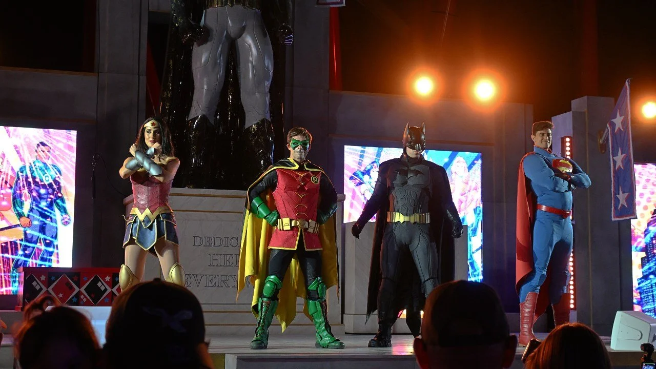 Throughout the evening, the Batman statue area becomes the central hub for all the action: speeches from the heroes, fun games hosted by an energetic DJ, and even a musical performance from Harley Quinn and the Hyenas.