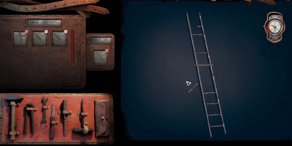 During this calm part of the game, you will find yourself collecting items, sometimes in order to get all the parts to put them together to make a bigger tool which is shown to you by gathering the items needed to make your potion making kit. You can also find multiple collectibles such as candy wrappers, guitar songs, QR codes, location posts, and more. One of the first things you do find though is your tool belt, sketchily and conveniently enough. These tools will be necessary for many puzzles and progress in the future.