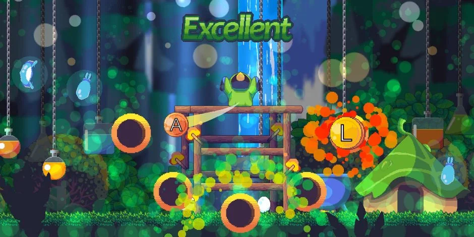 The singing “fights” and “collaborations” are all unique in their own way. While they are story continuing and are actual songs, which are sung without the words by having the music rhythm follow along the words of the song listed on screen like most kid sing-along shows, the way they play out range from directly flowing down, spinning in a circle to reach a bar, to even a memorization section. It is always a “they do it first, you repeat” type of flow and they start out easy, but by the end of the game it gets rather difficult. There is a “No Fail” to the game, so just as you are safe from the platforming section of the game, you can’t lose these singing moments either.