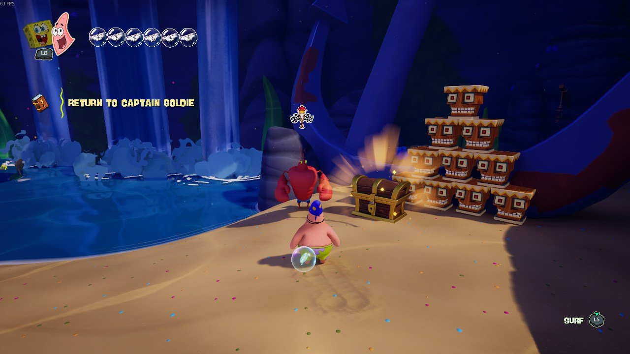 Visually, Titans of the Tide leans into that modern SpongeBob look we’ve become familiar with from recent games and specials. It’s instantly recognizable and full of vibrant character. Animation-wise, the game looks great—but it’s not flawless.
