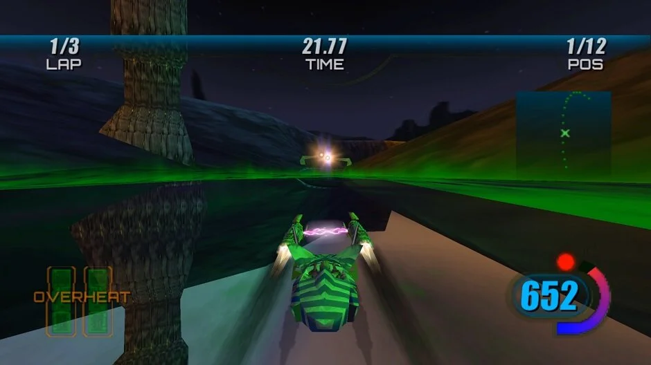 The way that pods handle and the different techniques available to players to learn and master also contribute to the overall feel of the game. There are powerslides to help you get around sharp turns, rotating your pod left or right to let you more easily fit through narrow gaps, brakes to let you quickly stop, and finally boosts that give you an increased speed for a limited time at the cost of overheating your engine. If you let them overheat they will catch fire and eventually explode unless you repair them. Even after 21 years I still stink at using each to their full potential but they are very fun!