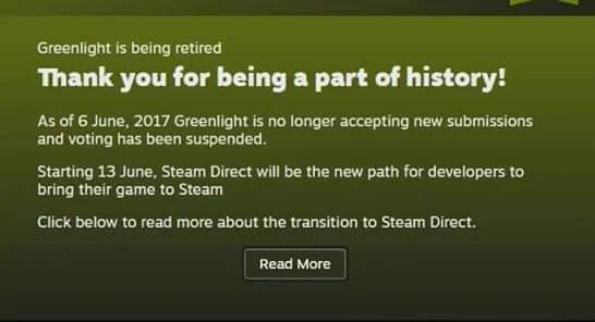 Steam has officially announced the shut down of the greenlight process! While they don't plan to start Steam Direct just yet, this is great news for gamers and developers alike! During the week, until Direct goes live on June 13th, the team behind the game pass/fail selection is going to be sorting through the remaining campaigns and giving the greenlight or the boot. To developers still in this process, good luck!