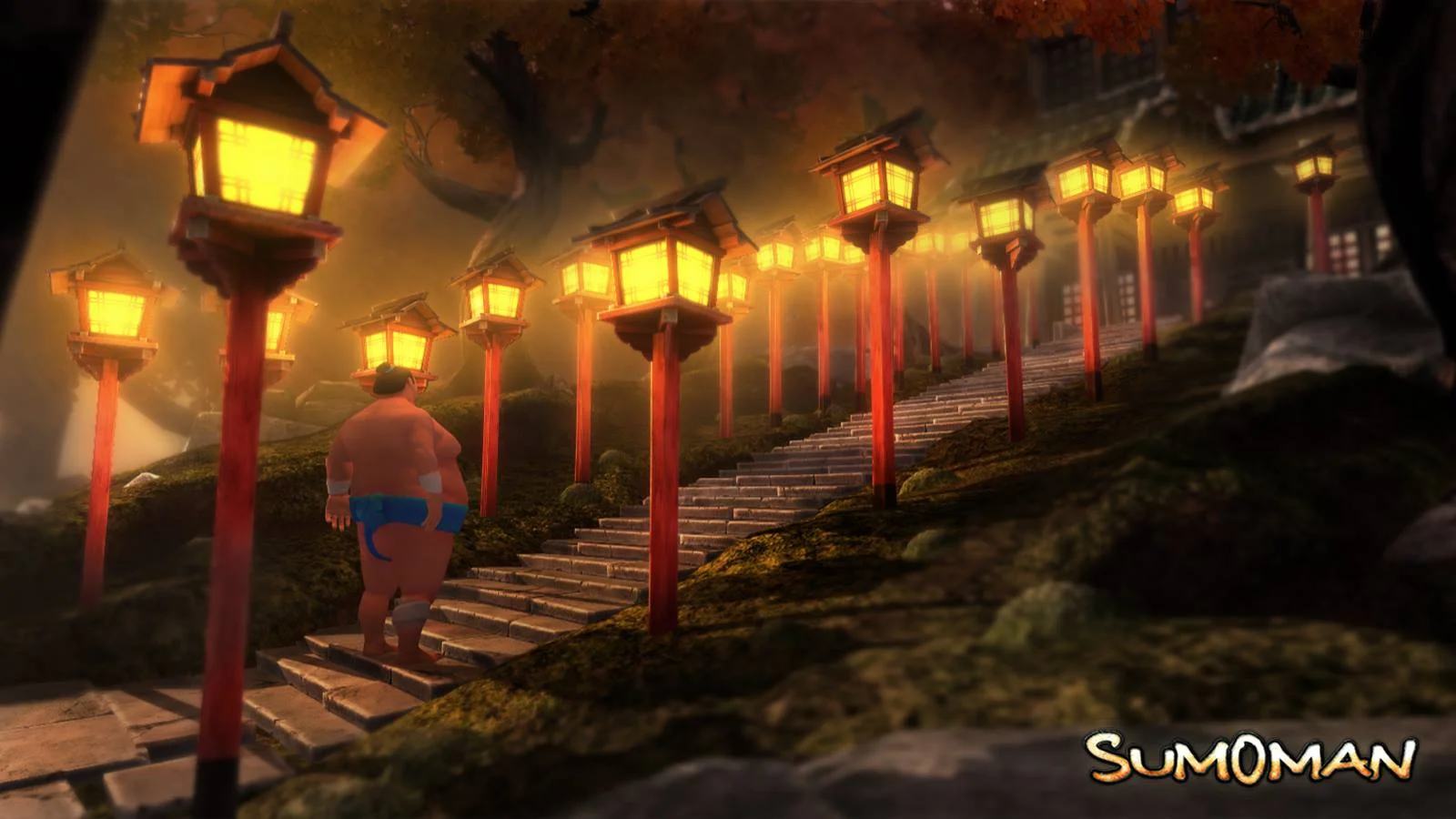 Sumoman begins with our hero returning home from a recent tournament, only to find that everyone in his town has been cursed and put to an everlasting sleep. The only way to wake them up is to travel across the land and journey through various platforming puzzles. The story is a bit weak, with little character depth and not much of a plot. This definitely isn’t going to win any awards in this department but it does have some funny situations that arise throughout the plot. Cutscenes play at the end of every level and progress the story, but I mostly found myself looking forward to the next humorous scene rather than the plot advancement.