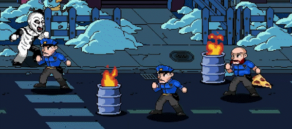 Step Into Art the Clown’s Shoes—If You Dare! In Terrifier: The ARTcade Game, YOU get to play as Art the Clown, as he rampages through movie sets where twisted versions of his own carnage are being filmed. But forget the Hollywood special effects—Art’s here to bring some real terror. You’ll fight off hordes of cops, stunt performers, makeup artists, and even innocent civilians, all while indulging in vibrant pixelated violence that’ll have you both laughing and cringing.