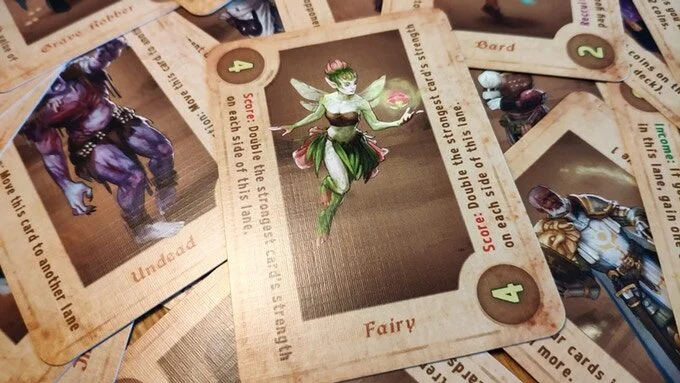 Destroying cards can elongate a battle for a castle lane by preventing any player from gaining the four cards necessary to score a lane. And flipping cards dramatically affects a lane’s strength by reducing character values to zero.