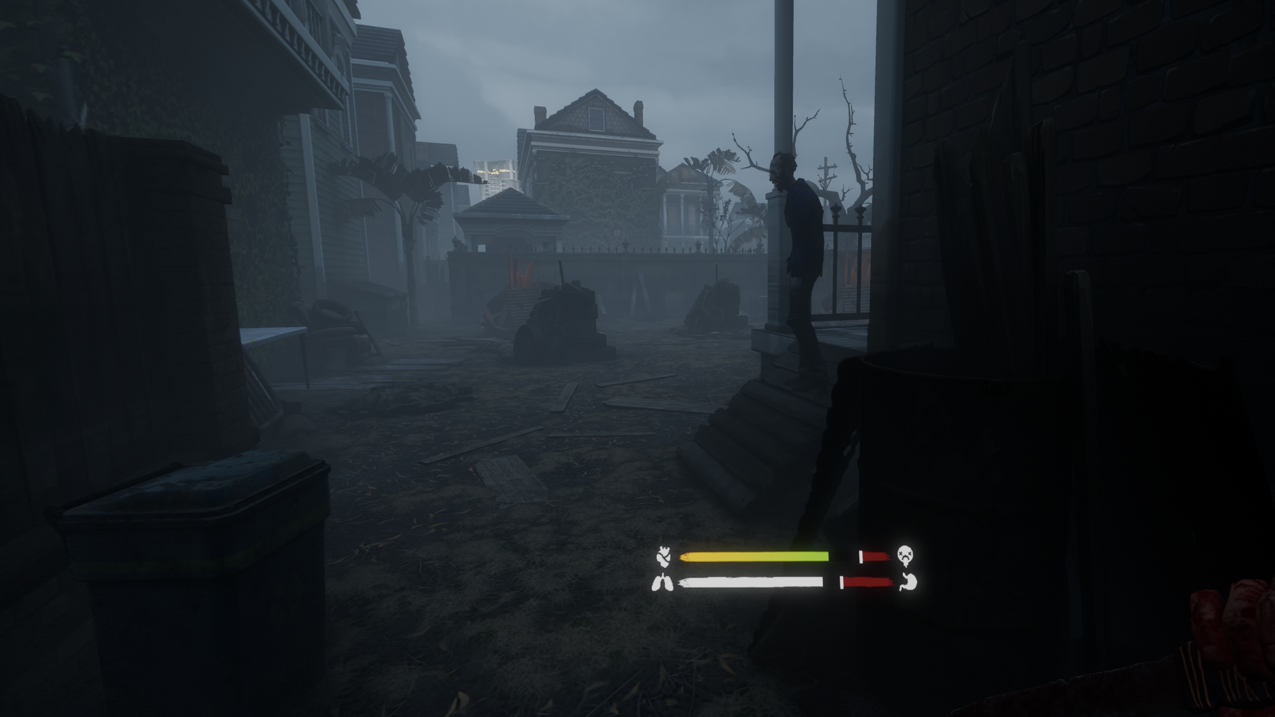 While the game’s plot is enough to keep one chasing quests, the real meat and potatoes of Saints & Sinners is its addictive gameplay loop. The game emphasizes inventory management with limited supplies, meaning The Tourist has to be extremely careful when navigating New Orleans’ dilapidated buildings. Every bullet is sacred and melee weapons can break over time with some being only useful for a few swings. A ton of items can be picked up, thrown, and recycled for materials that allow one to craft better gear and earn passive upgrades. There’s only so much one can carry at a time but dumping scrap into the recycling bin after a run is delightfully satisfying to the point that I really didn’t care about the story so much as I wanted to upgrade all my stuff and there is a lot of stuff.