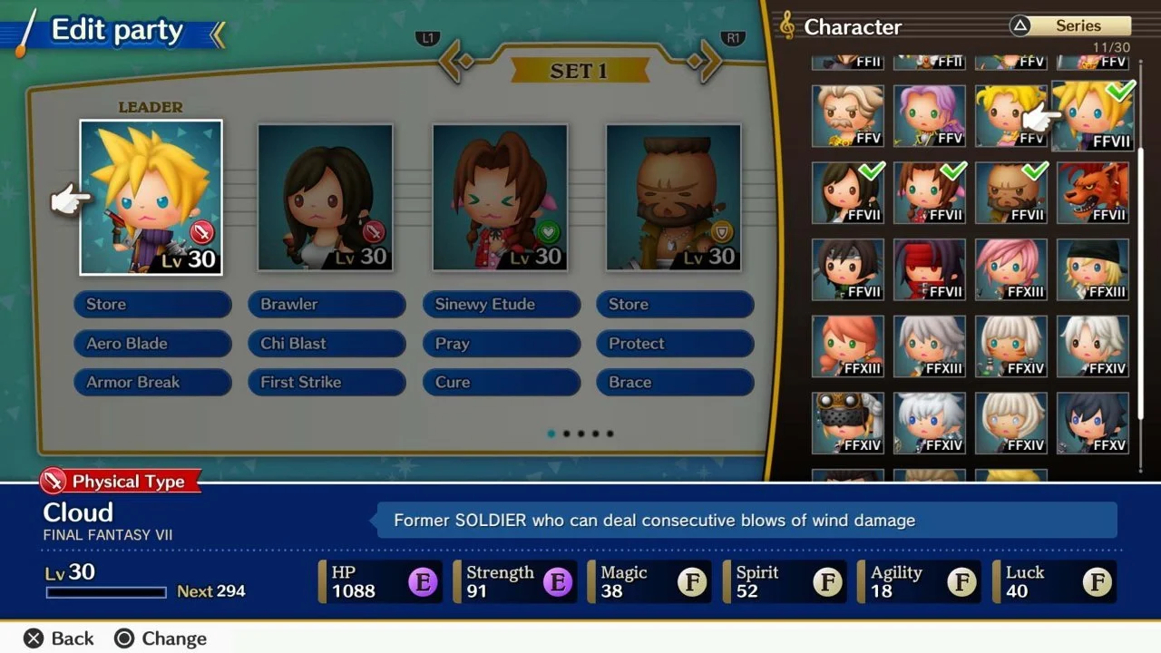 As you go through the list and find that they have just about every Final Fantasy game ever made in their listings, you’ll notice a set of characters from that chapter of the series as well. When you unlock a game’s music, you also unlock the characters in that game as playable characters for your custom party. While this may be a rhythm game, you will still be putting together a party of heroes to take on the various creatures and bosses you encounter while landing rhythmic combos.
