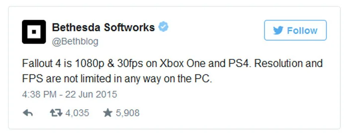 Much like your character takes a plain pipe pistol off the still twitching corpse of a raider for modification later, it appears Bethesda's looted the still wriggling Skyrim for its physics engine upon which to build Fallout 4. While some (perhaps many) PC gamers have been able to play Fallout with no ill effects, it appears that the vast majority have experienced at least some degree of shenanigans owing to the physics engine being directly tied to framerate. Before I continue, let me make one thing quite clear: I am not a game developer. You might even go so far as to say that I do not even code, bro. I do, however, play a lot of video games. Believe me when I tell you that to have my FPS crater when I’m doing something as simple as jumping up to an elevated surface is a colossal pain, as well as something I tend not to encounter. I’ll admit that I don’t have a top of the line gaming rig, but my machine surpasses both the minimum and recommended system requirements for the game. There’s no reason on the hardware end that this should be happening, which only leaves us with the software. Since the game’s release, unofficial fixes and tutorials have flooded the community. While they seem to tidy up the mess, that leaves us with wondering why there’s an issue in the first place. Right up there with wondering why Bethesa went on record via Twitter to tell us the framerate wouldn’t be capped, only to release a game with, you guessed it, capped framerate.
