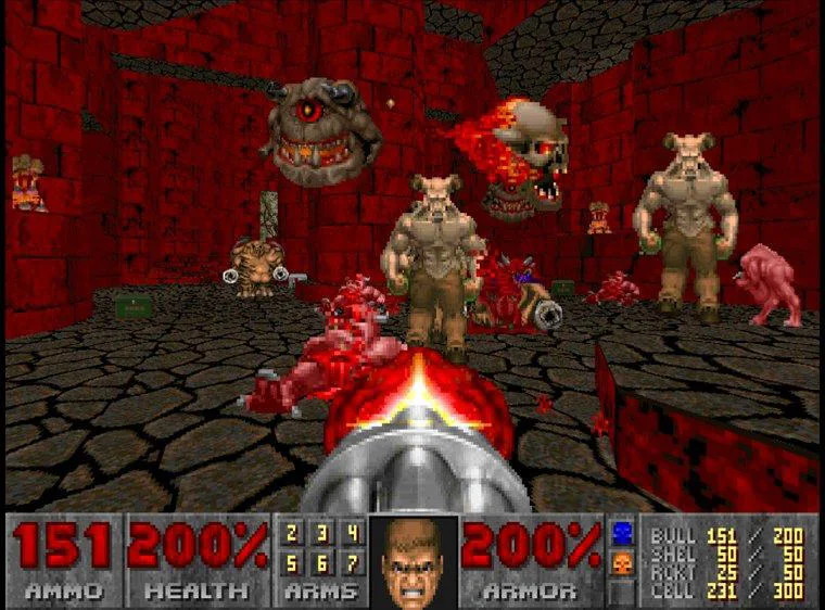 The pacing of Doom 3, although it was worth some scares, was not quite the classic Doom gameplay feeling I had grown up with. It immersed me with some cutting edge visuals at the time, and playing it on a friend’s high end PC with bitching surround sound made it an experience I’ll never forget. the pacing, however, was more reminiscent of a Resident Evil survival horror than Doom’s signature fast paced horror-action. I want to mow down hell spawn like there’s no tomorrow and no choice, and the adrenaline of taking out droves of those pricks can be big, stupid fun.