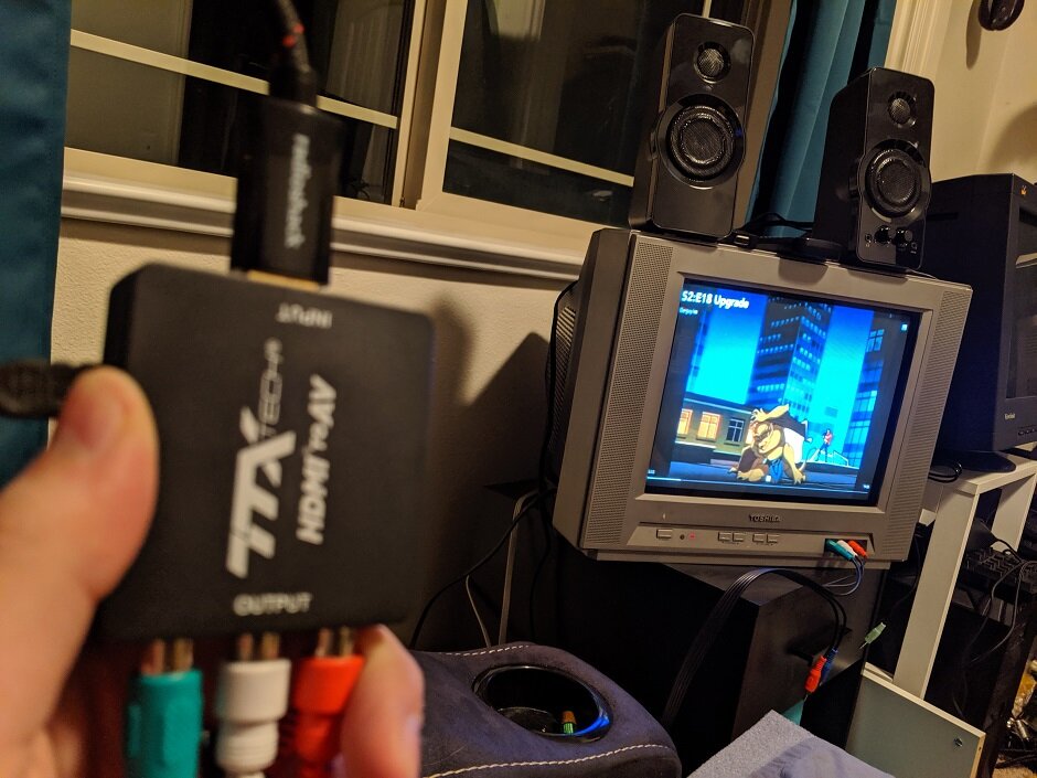 TTX Tech also offers an HDMI to Composite downscaler that can shrink signals up to 1080P down to 480i. I honestly can’t think of many uses for such a device in today’s world where HDTV adoption has become pretty standard. Just for fun though, I hooked up my Xbox One X and watched some Gargoyles the way it was meant to be watched! Unfortunately, Disney+ doesn’t have the option to stretch the video to full 16:9, which would then be compressed to 4:3 on the TV, resulting in an incorrect aspect ratio once again. Still, it was fun to do and see!