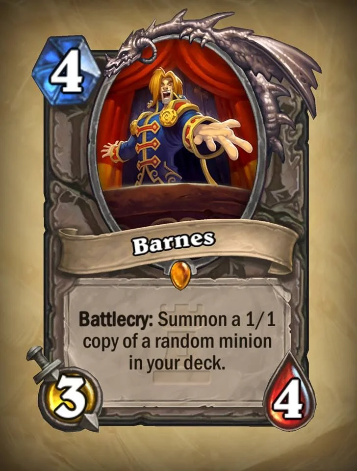 This change would make Barnes worse strictly because off the mulligan, you won’t keep minions in your hand that are good to get off the Barnes Battlecry. So, if you intend to play Barnes on curve, you are likely to not get a good result off of its Battlecry.
