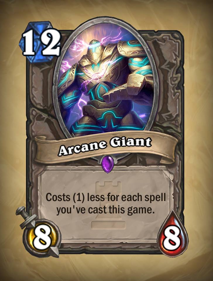Similar to Thing from Below, Arcane Giant allows for huge swing turns later on in the game. It is currently only viable in Druid archetypes, due to the classes cheap-costing spells. Often times, this card will end up costing 0 Mana before it hits the field. In addition, like Barnes, Arcane Giant is a neutral card, which is a cause for concern.