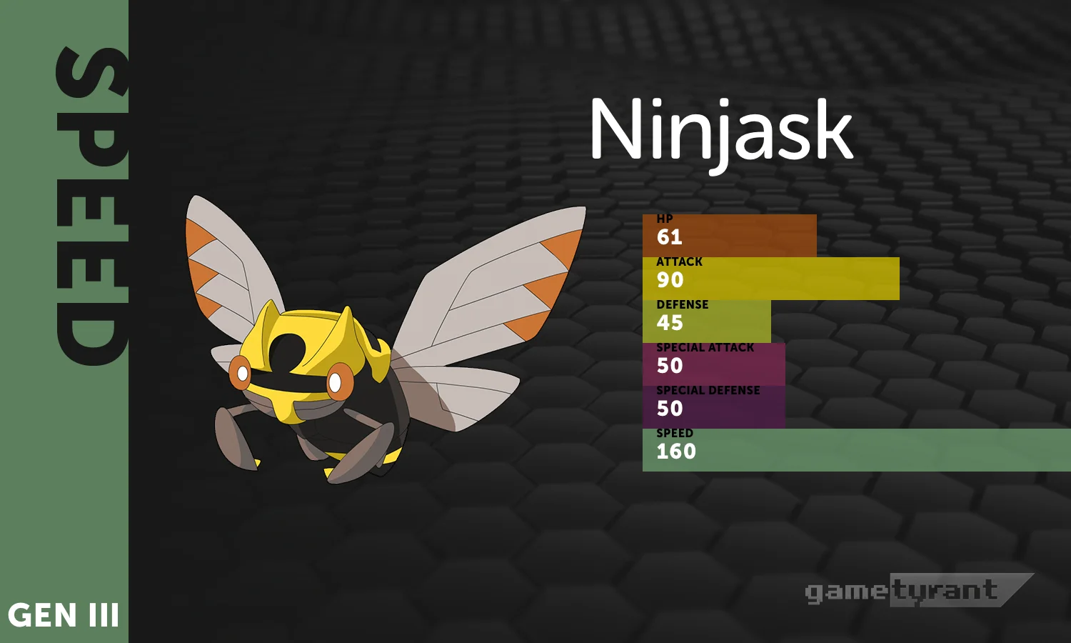 This ninja bug is not only the fastest Pokemon of this Generation, but of all of the Pokemon we cover on this list. It’s no wonder that Ninjask is considered to be almost invisible.