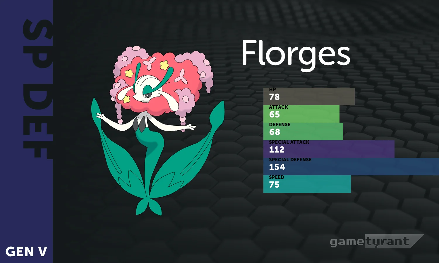 Florges, a Fairy-type, is the best looking in our Generation VI team, and her Special Defense is very high with a competitive Special Attack as well.