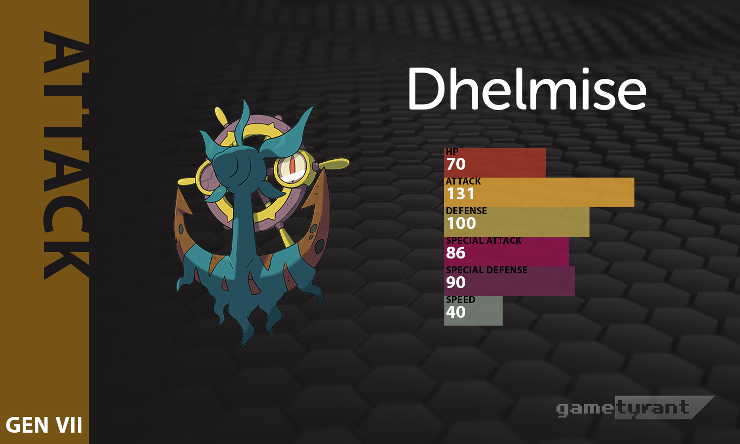 Not my favorite design for a Pokémon, but one of the better inanimate object based options. Technically Crabominable beats Dhelmise by 1 point in attack, but Dhelmise is more well-rounded.
