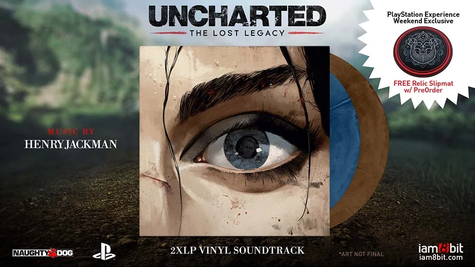Speaking of merchandise, Naughty Dog will be debuting new merch for both Uncharted 10th Anniversary and The Last of Us Part II at PSX. There will be five different Uncharted shirts, each representing a different game in the series. A 10th Anniversary poster of Uncharted and a 2-disc vinyl record of The Uncharted 10th Anniversary soundtrack will also be available at iam8bit booth. Check out the poster and the record below: