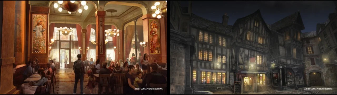 Guests will journey through the ornate portal from a Muggle park in Paris into the bustling 1920’s Place Cachée, a hidden shopping district filled with Haussmannian buildings, charming sidewalk cafés, and historic Parisian domes. Here, wizards and non-magiques alike can cast spells with interactive wands, encounter fantastic beasts at a traveling circus, and, for the first time ever, travel across countries and time to 1990s London using the Métro-Floo for a thrilling adventure inside the British Ministry of Magic.