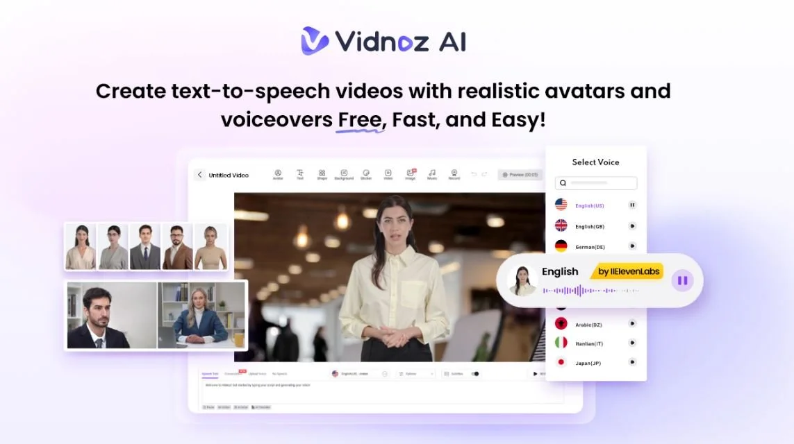 High-Quality AI Voices: It offers 1830+ AI voices, all powered by popular platforms such as ElevenLabs, Google, and Microsoft. Vidnoz voices are available in 140+ languages, including English and Spanish.