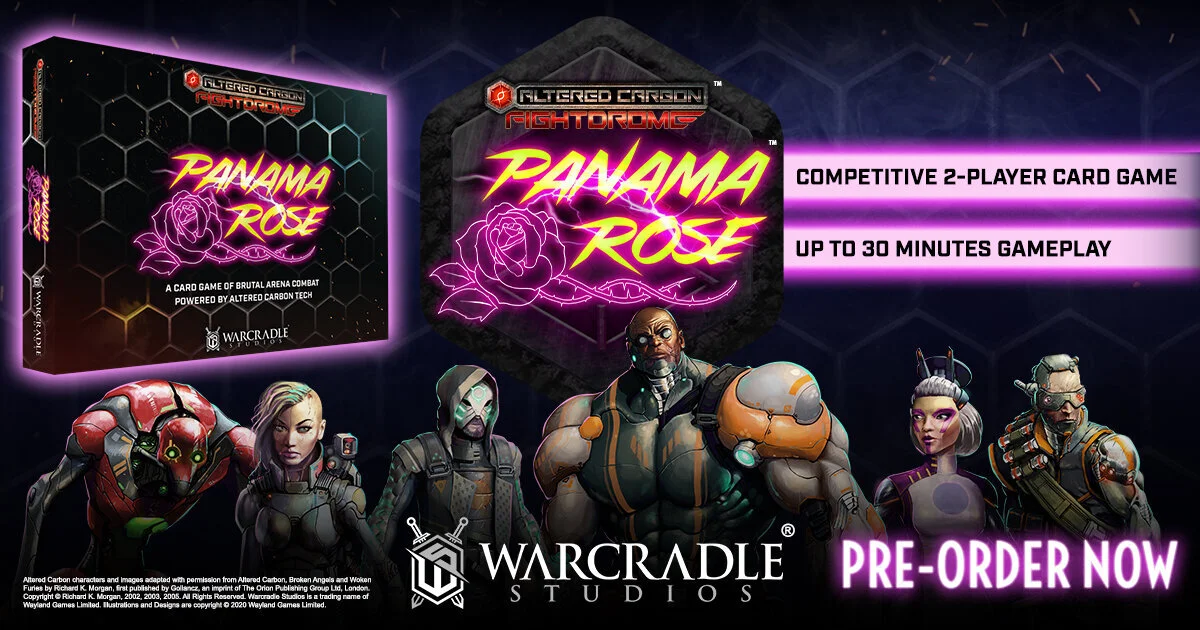 For Altered Carbon fans out there, the iconic Fightdrome from the novels has been recreated in Fightdrome: Panama Rose, which is a slick card game that challenges players to fight each other in a to-the-death duel. The last player standing (or sitting) with cards is the winner unless players agree on the variant where it’s a race to fame over the course of several bouts.