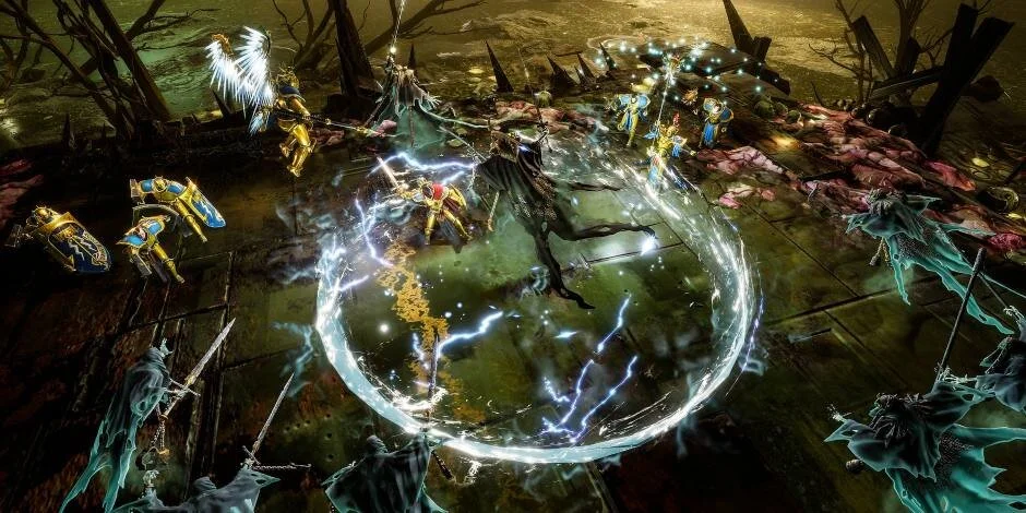 Storm Ground has a very distinct art style that is actually pretty easy on the eyes. The bright blues and yellows of the Stormcast Eternals contrast really nicely against the dark and muddy backgrounds. It’s all pretty dynamic. The great look of this title is furthered by the lighting of both the environments and spells/attacks.