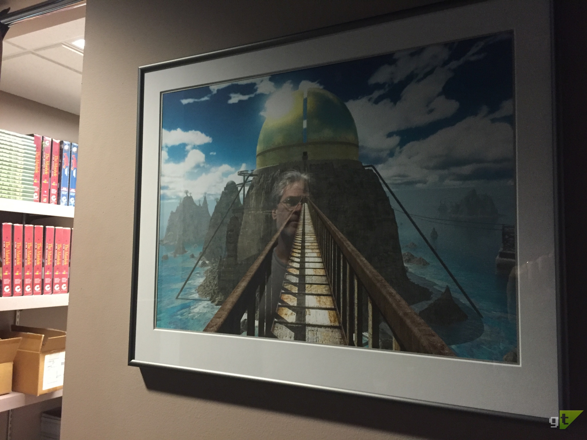 Upon receiving the opportunity to spend an evening at Cyan Worlds office, that powerful force of nostalgia I mentioned previously whipped into full force as I pulled my laughable rental car into the tree covered parking lot. There I stood at the doorway of the creators of dreams, of worlds; those who had filled my childhood (I played Manhole!) and teenage years not only with geeky splendor, but with an appreciation for art, character acting, and music as a whole. After pushing the reception button, a few minutes later, a man in jeans, a grey shirt, round glasses complete with a silvery head of hair and slight beard, smiled and said, "Hi. I'm Rand." Trying to contain myself without bursting out a million thank yous and questions, I replied back, "Oh, hi Rand. I'm Dustin from GameTyrant.com", like it was no big deal. In my mind, I felt like I was being escorted by the Duke or Lord of Gaming Goodness yet here was an immediate warmth that emitted from Rand. He's an extremely humble yet determined man for someone with so much clout though flashes of wisdom and brilliance came often during our visit. Despite the fact that he's basically a rock star, I immediately felt welcome and at ease. Rand was kind enough to give me a quick but extremely insightful tour of the offices of Cyan Worlds. It's like a museum for geeks, in the best of ways.