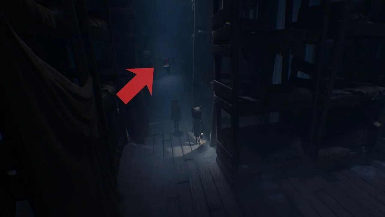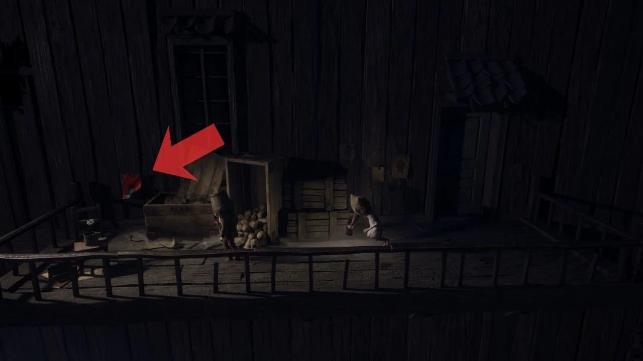 Once you’ve entered the cinema in the village, walk to the bottom right-hand corner. There’s a poster on the wall, so jump on top of the drawer to rip it off.