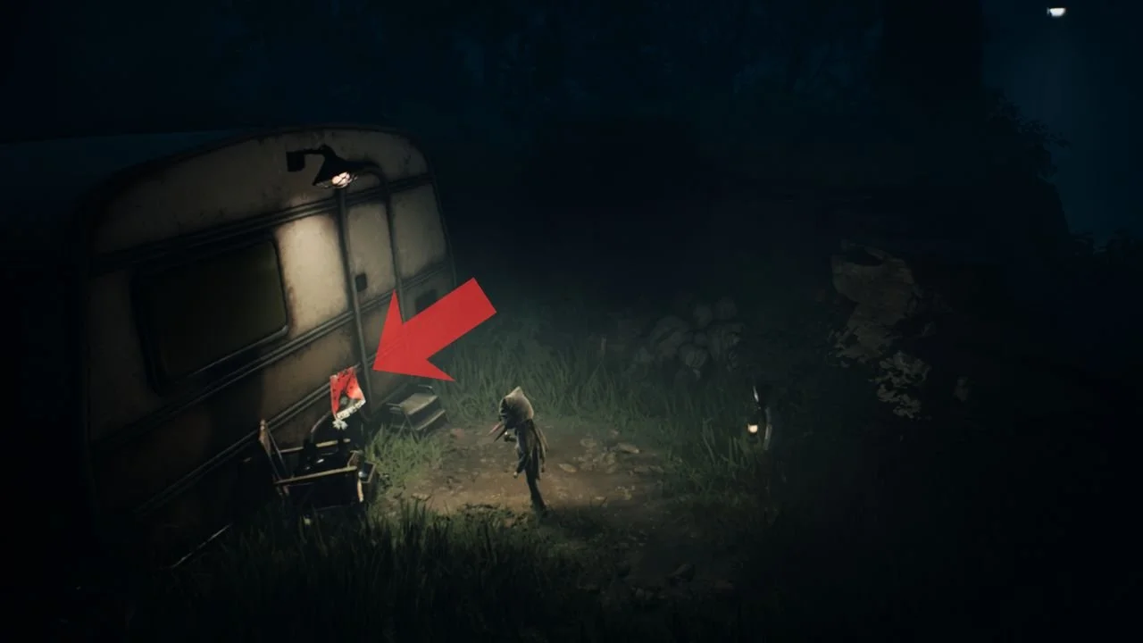 After leaping out of sight from the ice cream truck, wait for the cutscene to end. Then, run to the left side, and you’ll see a light illuminating a camper van. There’s a poster on the van.