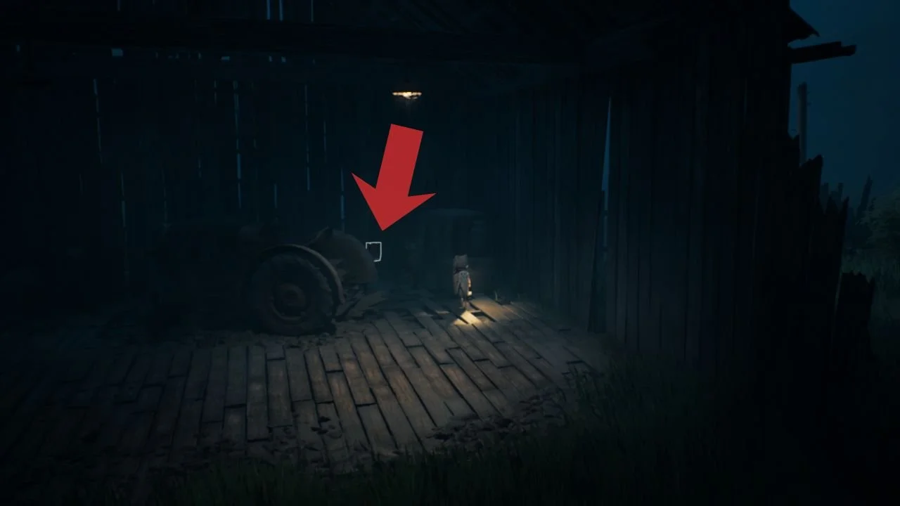 Once you’re in the pig barn and you’ve reached the giant pig, go through the door on the left. Keep heading left until you reach a smaller barn. Squeeze through the wall to get inside, and behind the tractor on the back wall is a poster.