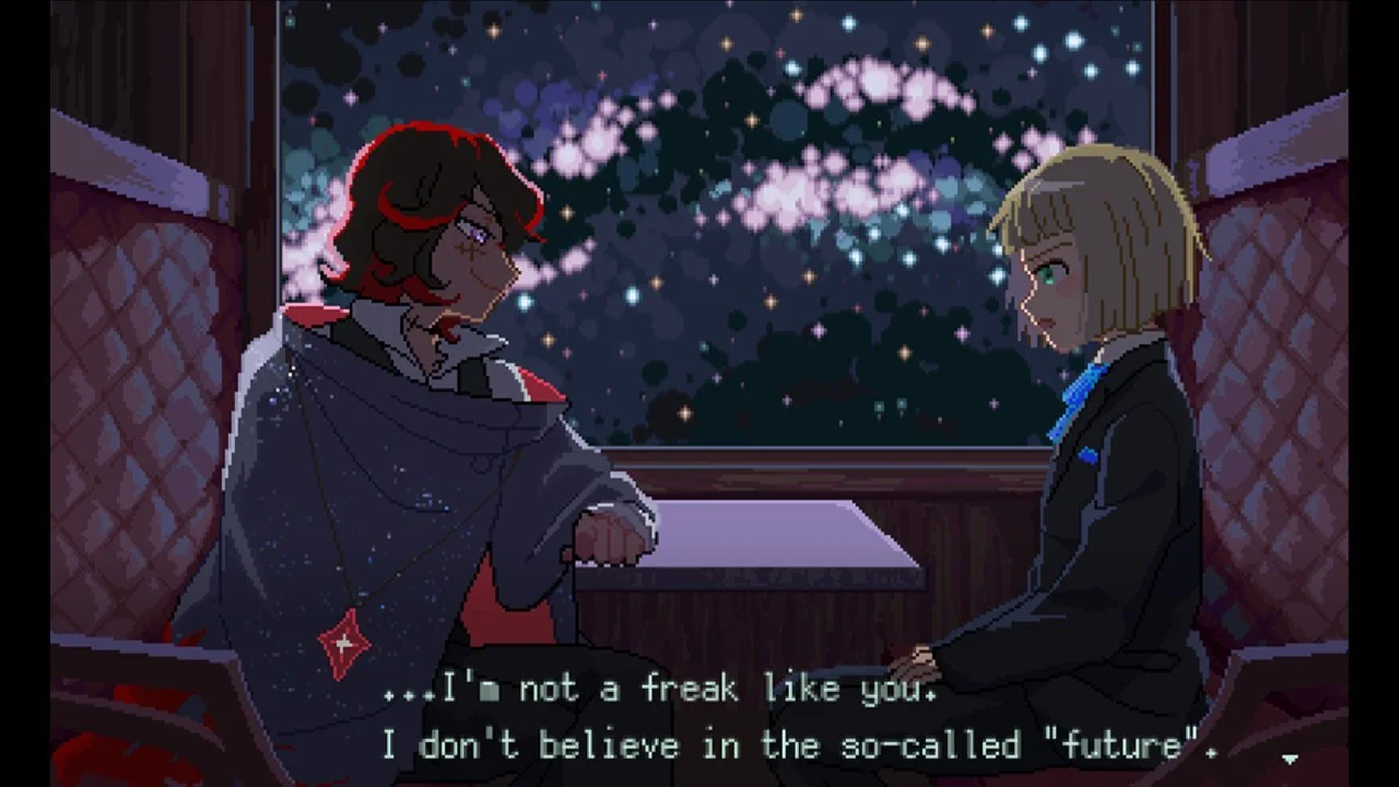 This is a story of self-realization and growing up. Both characters offer a unique perspective on the theme. Giovanni has the lowest human score and Campanella has one of the higher ones. In this Odyssey-esque story, the two boys will have to decide what it means to find themselves, and how that will change regarding their own personal lives. All of this will converge through a quest to find the mysterious “Crimson Southern Cross” at the edge of the universe. There are many mysteries in the game, and the only way to unearth them is to play the game.